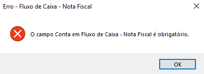 O campo Conta em Fluxo de Caixa - Nota Fiscal é obrigatório