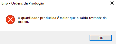 A quantidade produzida é maior que o saldo restante da ordem.