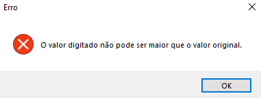 O valor digitado não pode ser maior que o valor original.