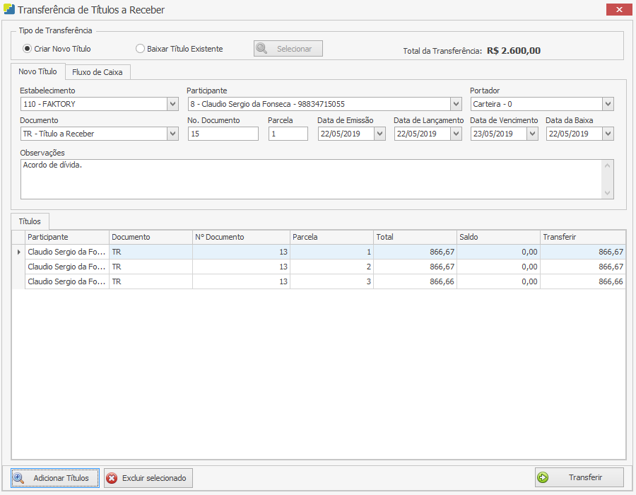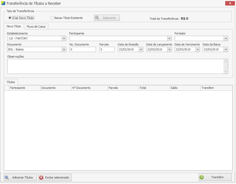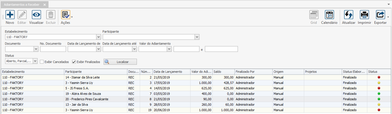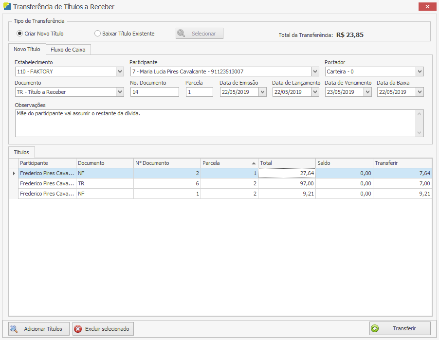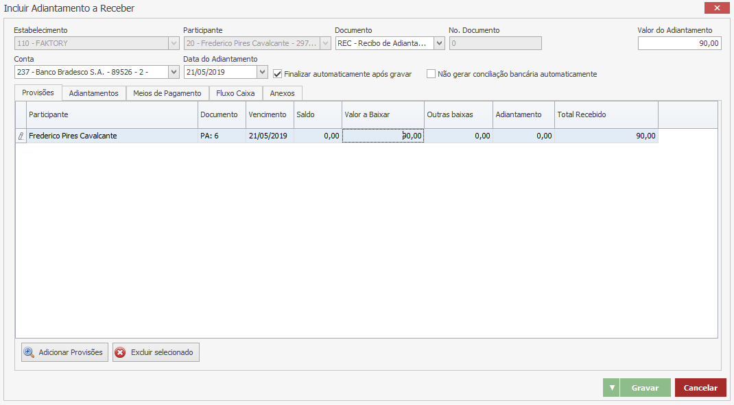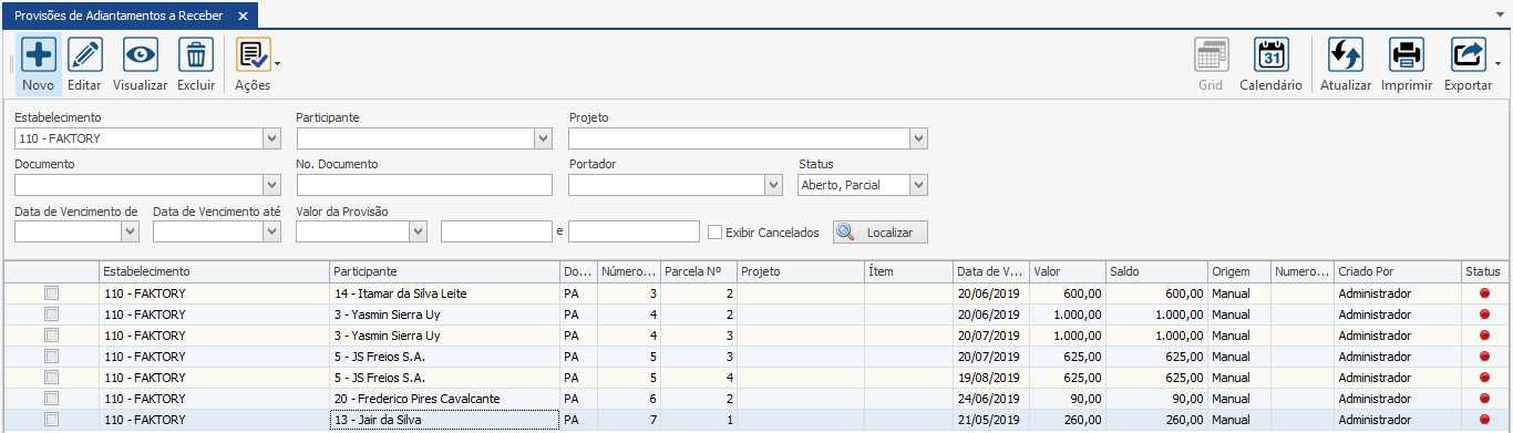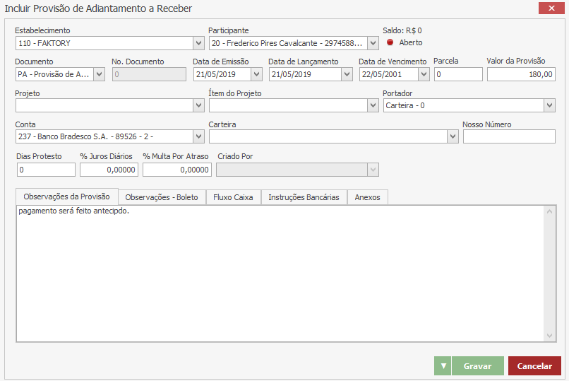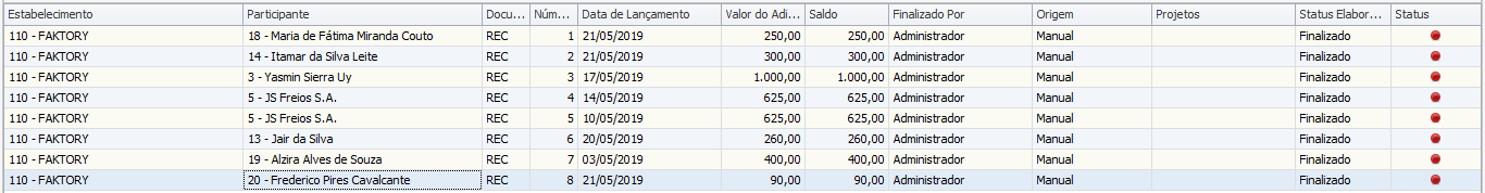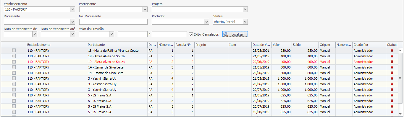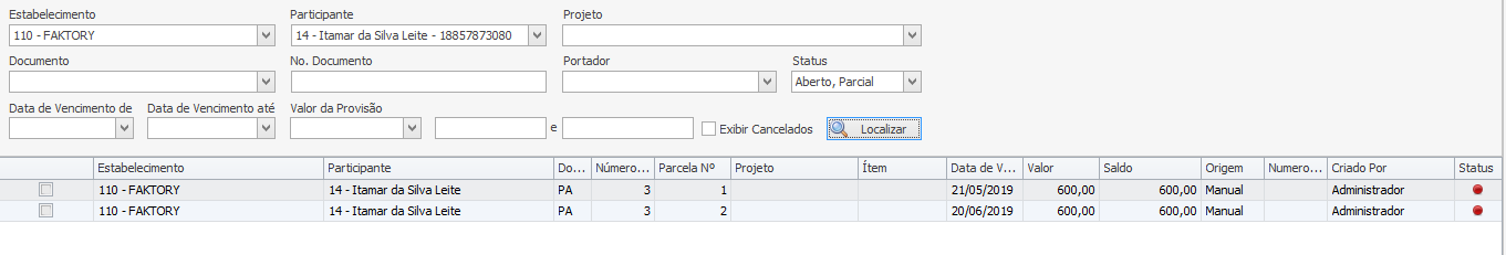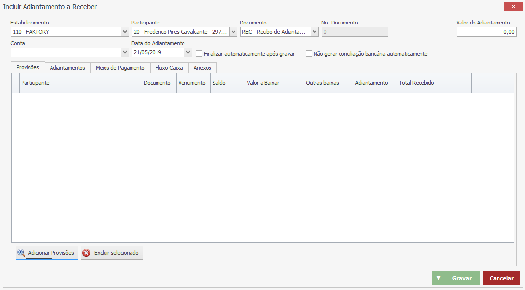 Para o lançamento de títulos, provisões e adiantamentos é necessário o cadastro do Participante no sistema. Participante é toda pessoa física ou jurídica na qual será vinculado a alguma movimentação financeira.