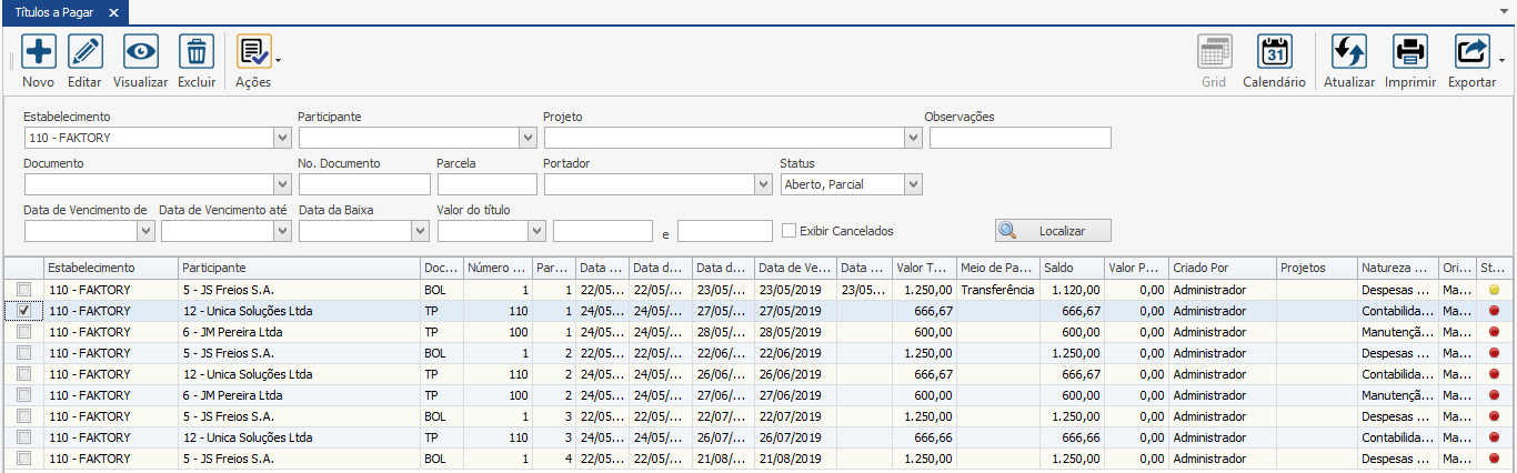O sistema Faktory One possui uma única tela para o cadastro de participante, ou seja, todos os tipos de participantes são cadastrados no mesmo lugar. Cabe ao usuário classificar qual é o “Tipo de Participante”. Dessa forma o banco de dados fica mais leve.