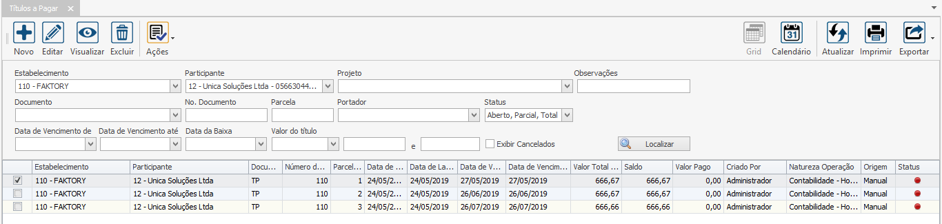 Tipo Contas a Pagar – Marque esta flag caso o participante somente possua movimentações no financeiro de contas a pagar.