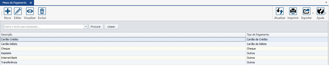Meio de Pagamento Previsto – Determina quais meios de pagamentos vinculados aos títulos serão exibidos no relatório.