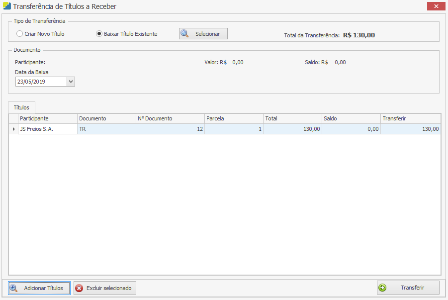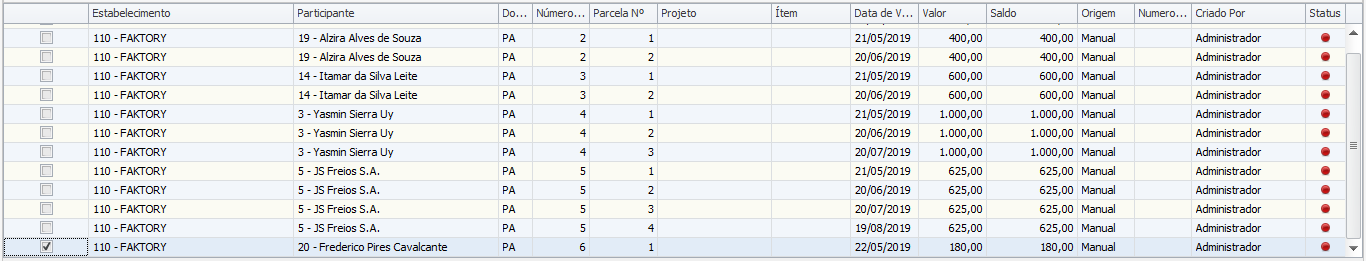 BAIXA DE CONTAS A RECEBER POR PARTICIPANTE