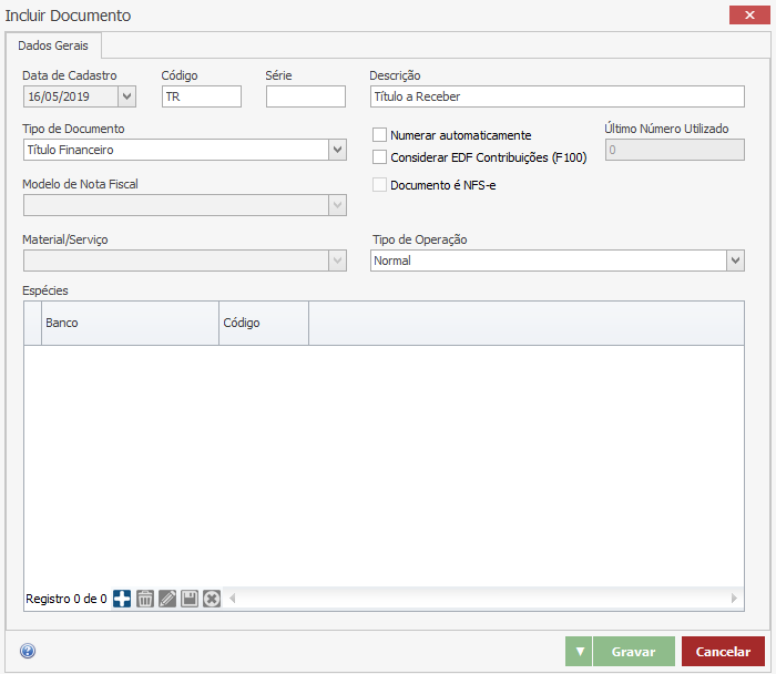Documento do Título/Provisão – Determina o tipo de documento utilizado no lançamento do título e provisão que será exibido no relatório.
