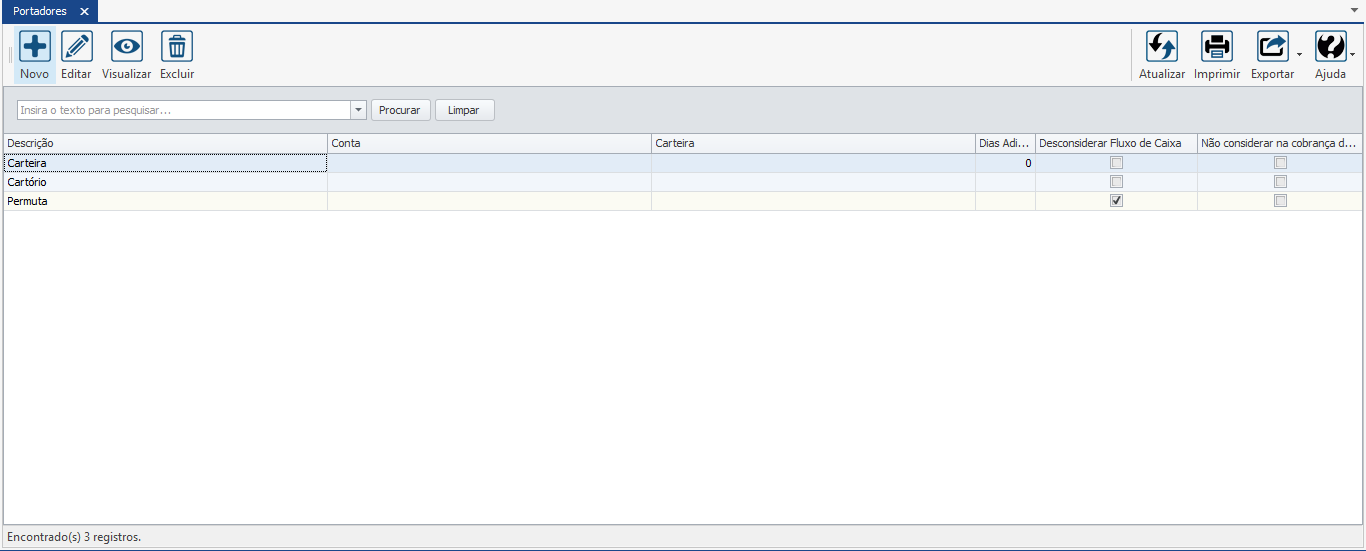 Portador – Seleciona os títulos vinculados a um ou mais portadores.