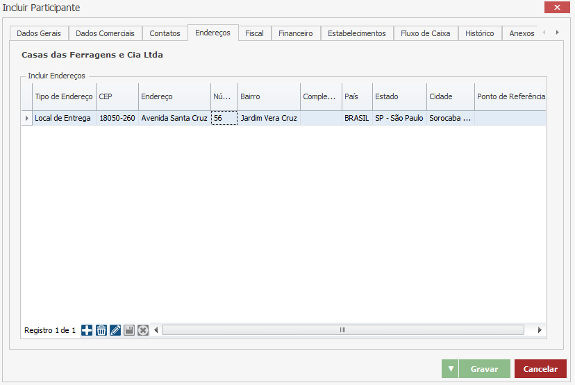 Tipo de Endereço – O participante pode possuir diversos tipos de endereços. Selecione o tipo de endereço adequado. As opções são: Local de Entrega, Local de Cobrança e Local de Faturamento.