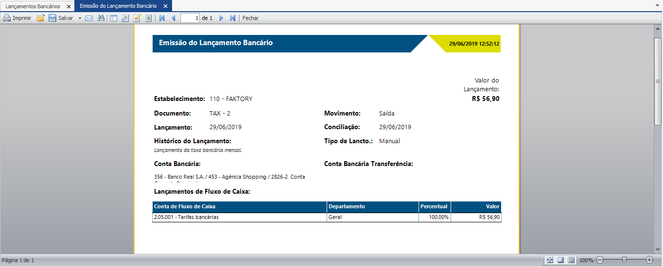 EMISSÃO DE LANÇAMENTO BANCÁRIO