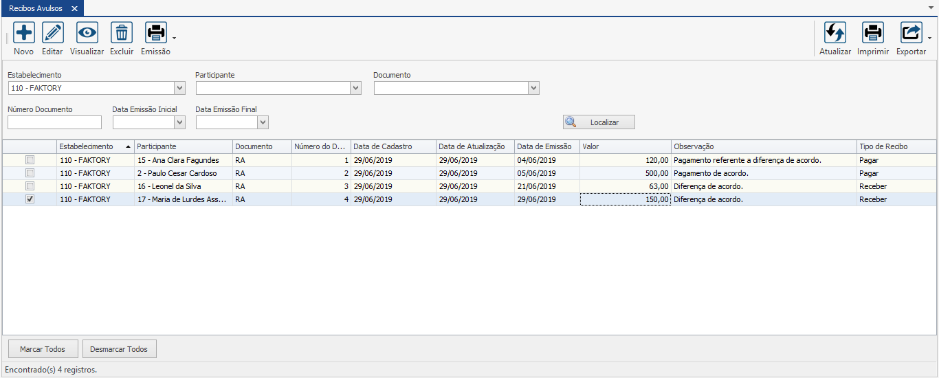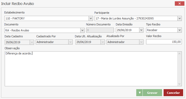 Participante – Selecione o participante do recibo.