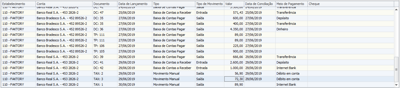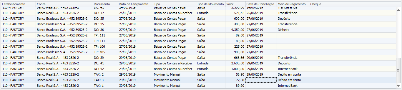 Note que o sistema trouxe todos os lançamentos realizados, seja automaticamente através das baixas ou os lançamentos manuais.