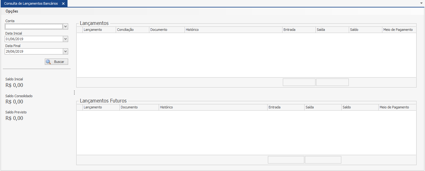Data de Lançamento Inicial – Determina a data inicial para exibição dos lançamentos bancários com base na data de lançamento.