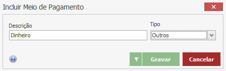 Descrição – Informe o nome do meio de pagamento desejado.