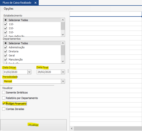 Para comparar o Budget com o que foi realizado, temos a opção de puxar o Budget no fluxo de caixa realizado.