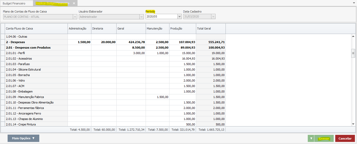 Dessa forma, o sistema irá analisar toda a movimentação financeira desse período e trazer a média para o Budget. Feito isso, clique em “Gravar”.