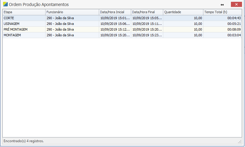 6.2. Apontamento de Produção por Funcionário