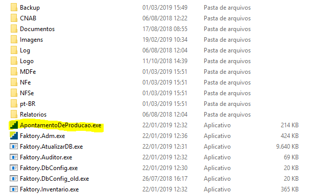 O Apontamento é realizado por um aplicativo fora do sistema Faktory. Para abrir, vá na pasta onde o Faktory está mapeado na sua máquina e clique duas vezes no aplicativo Apontamento de Produção: