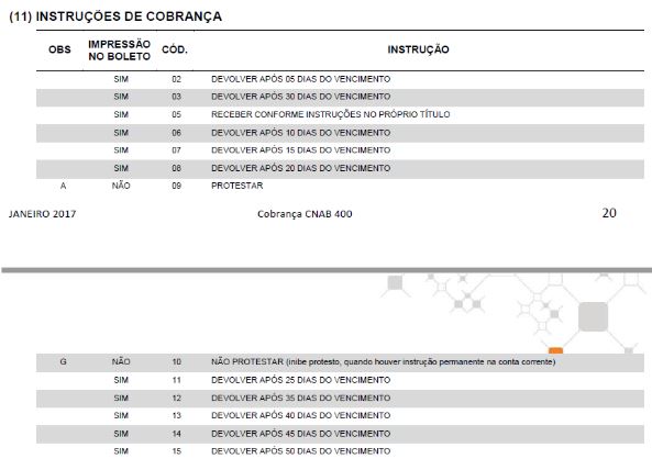 Para cadastrar as instruções ao banco é ideal que se tenha em mãos o layout do banco. Segue um exemplo do layout CNAB 400 do Banco Itaú: