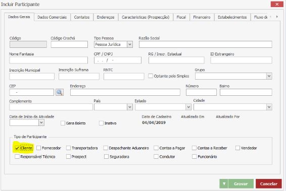 CADASTROS E CONFIGURAÇÕES DE PARTICIPANTE (VENDENDOR/CLIENTE)