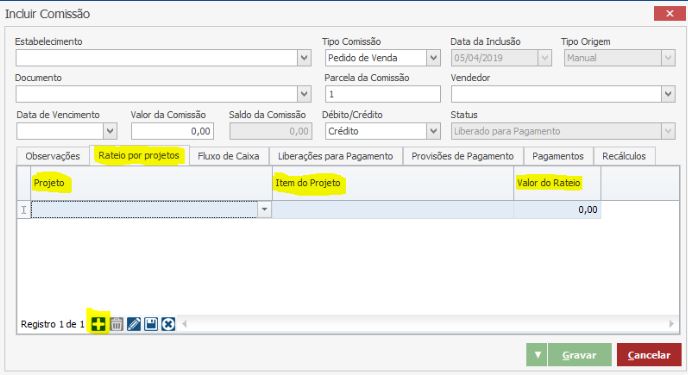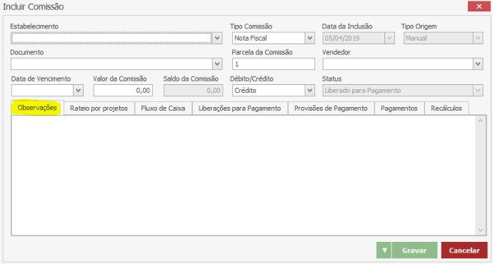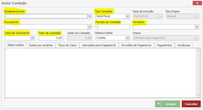 Após o preenchimento correto dos dados, clique em GRAVAR para concluir o lançamento da Comissão.