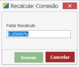 Será exibida a tela Recalcular Comissão. Informe o Fator Recalculo para aplicar o ajuste de valor na Comissão.