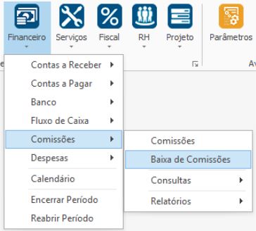 Em casos que a baixa da Comissão tenha sido realizada incorretamente, pode ser efetuado o Cancelamento da Baixa. Acesse: FINANCEIRO > COMISSÕES > BAIXA DE COMISSÕES.