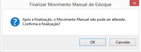 . Será exibida a tela Finalizar Movimentação Manual de Estoque conforme imagem abaixo.