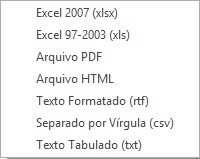 10) Botão Exportar - Permite ao usuário exportar a grid de seleção para as opções abaixo: